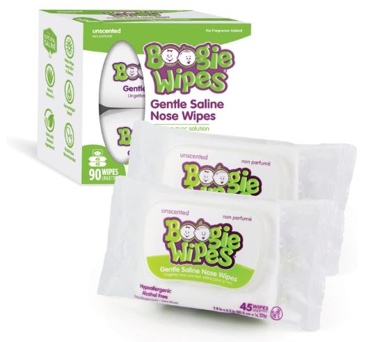 Boogie Wipes are made from natural materials, are unscented, ultra-thick, and well-moisturized. They are free from alcohol, phthalates, and parabens, making them hypoallergenic. Infused with Vitamin E, Chamomile, and Aloe, they are suitable for wiping noses, faces, fingers, toes, and for diaper changes. A 12-pack sells for about $51.95.